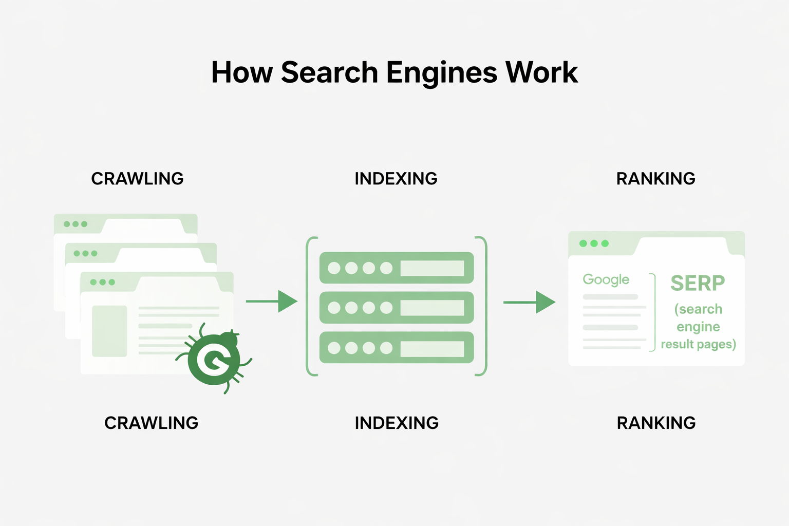 Once a page is found, search engines crawl it. Crawling allows them to read HTML, analyze structure, and extract signals that help search engines understand what the page is about. Clear headings, logical links, and accessible content make this process easier for both search engines and users.